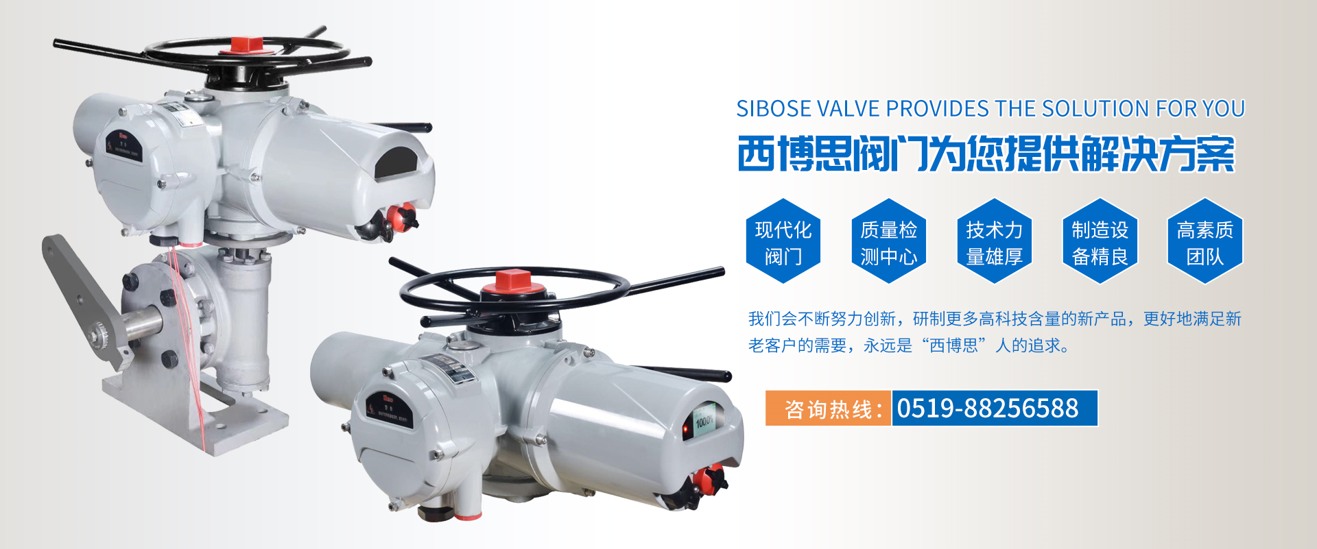 江蘇西博思閥門科技有限公司是一家專業(yè)從事各類電動執(zhí)行器,電動閥門集研發(fā)、生產(chǎn)、銷售、服務于一體的技術型企業(yè)。產(chǎn)品功能齊全、性能可靠、控制系統(tǒng)先進、使用維護方便,被廣泛應用于電力、冶金、石油、煤炭、化工、造紙、自來水、污水處理、 物聯(lián)網(wǎng)農(nóng)田灌溉等。產(chǎn)品質(zhì)量穩(wěn)定可靠,受到廣大用戶的普遍贊譽。